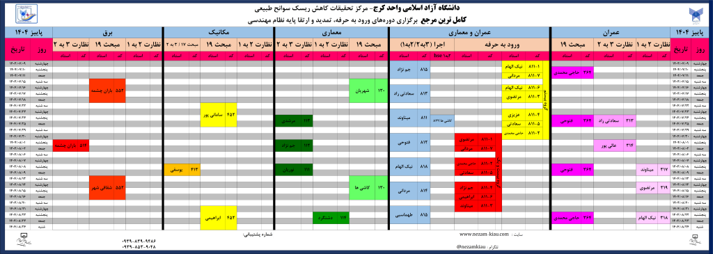 لطفا از طریق جدول زمانبندی تاریخ دقیق روزهای دوره انتخابی را چک بفرمایید…